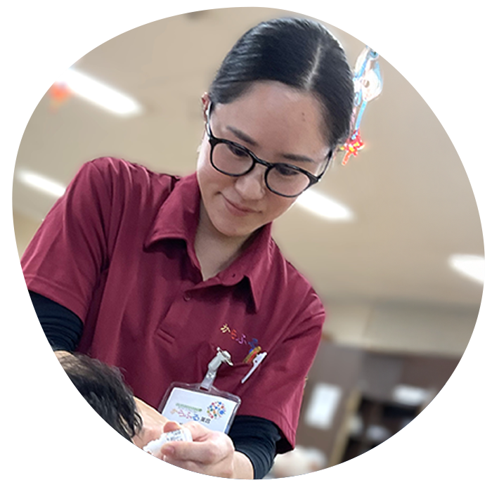 入浴後の処置、経管栄養、服薬管理、点眼、インシュリン注射などの看護業務を行っています。