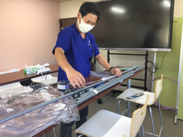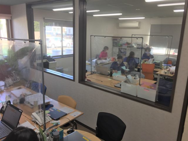 事務所ではリハビリスタッフ手作りのパーテーションが大活躍👍