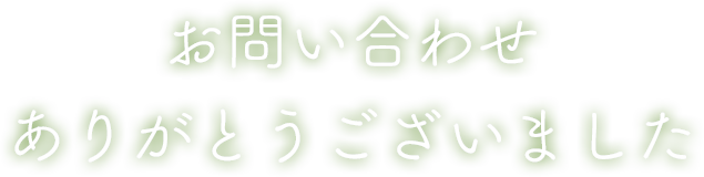 このたびはお問い合わせいただき、ありがとうございました。 自動でお問い合わせ確認メールを返信しております。 10分以内にメールが届かない場合は、何らかのシステム上のトラブルか、 お客様によりご入力いただいたメールアドレスに誤りがある場合がございます。 その際は、お手数ですが再度送信いただくか、 0120-907-801までお電話くださいますようお願い申し上げます。